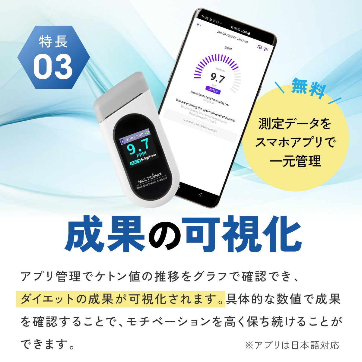 他の画像を見る 糖質制限可視化 糖質制限 脂肪 燃焼 可視化 ケトンメーター ケトスキャンSmart KETOSCAN スマホ アプリ 息を吹き込むだけ ケトン体 ケトン値 体重計 成果 効果 数字 測定 5.00 通常価格 ¥ 34,980 のところ 販売価格 ¥ 33,231 税込 お気に入りに登録する