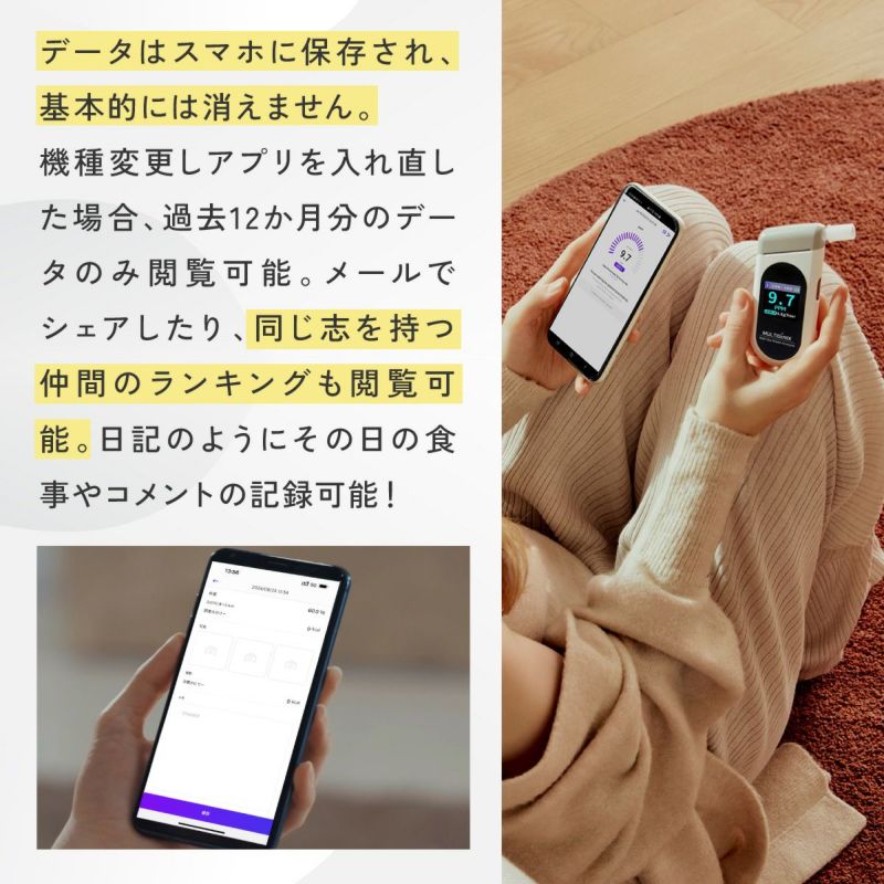 ケトスキャンSmart本体、アルミパック(開封前、ケトスキャンSmartが入っています)、専用ポーチ、USB(Type-C)ケーブル、マウスピース収納用ポリエチレンパック、マウスピース×5、日本語版取扱説明書、日本語版アプリ説明書 |