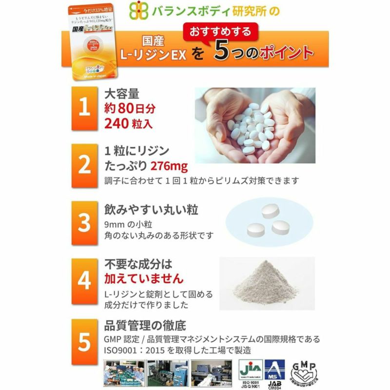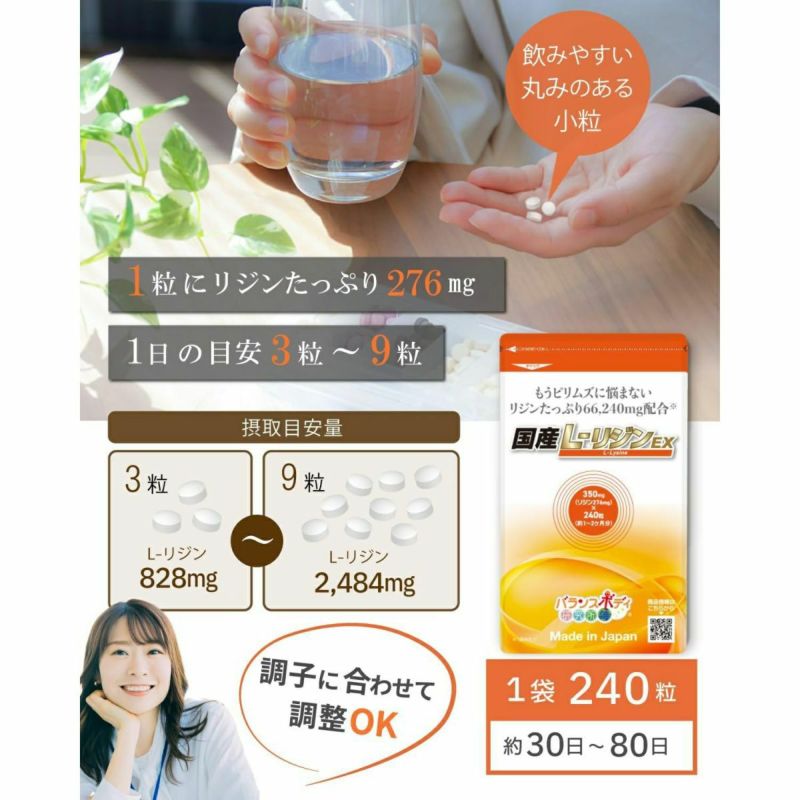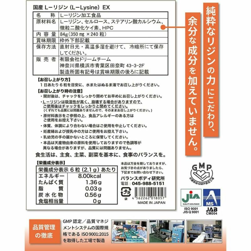 350mg×240粒(約1~2ヶ月分)※リジン1粒276mg |