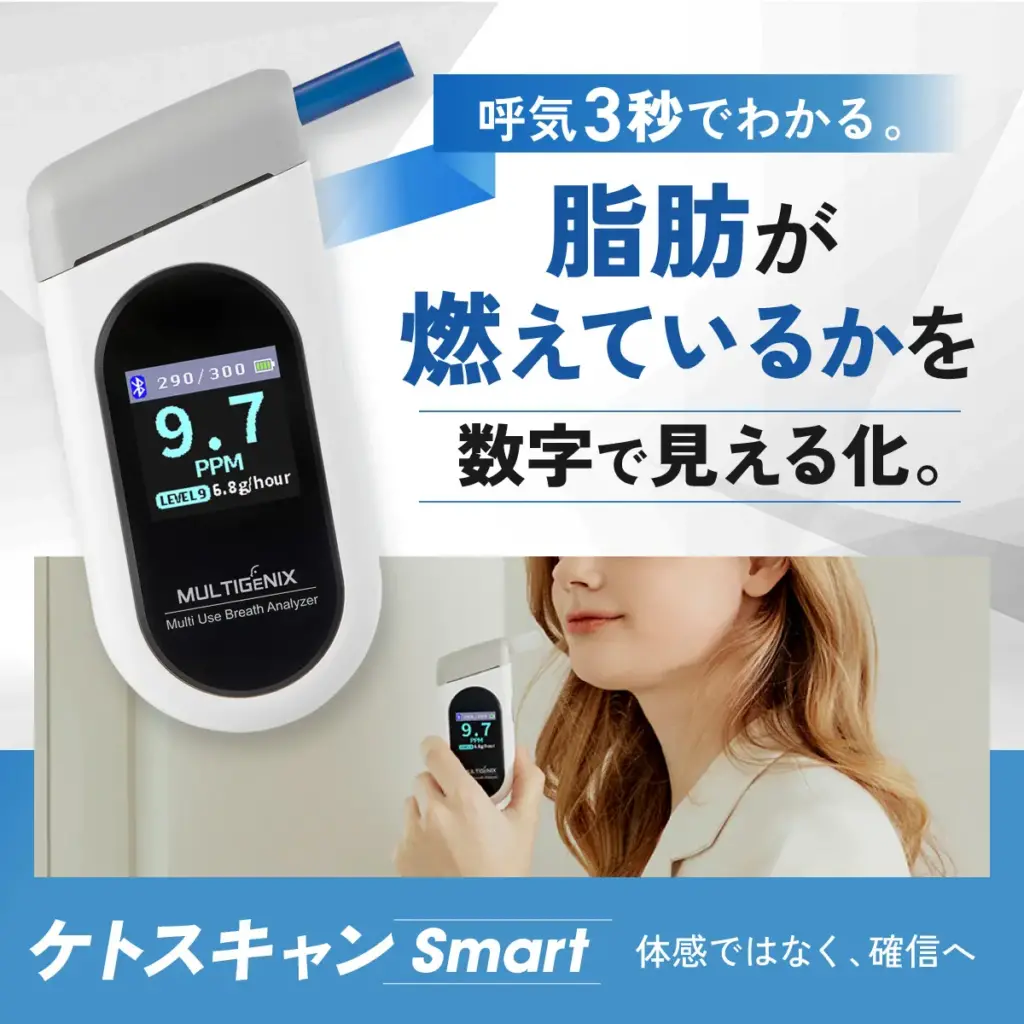 そこで登場するのが、呼気中のケトン体(アセトン)を測定できる「ケトスキャンSmart」 です。