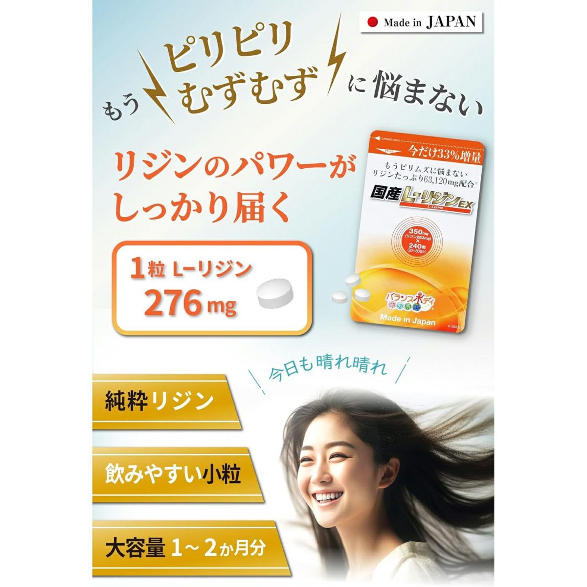 他の画像を見る 1回購入 国産サプリシリーズ都度注文 リジン 国産 L-リジンEX(350mg×240粒) サプリメント 1粒 リジン 276mg ヘルペス アミノ酸 サプリ 糖質制限 野菜 ナッツ アルギニン 過剰 リシン 4.57 販売価格 ¥ 1,980 税込 1月上旬から順次発送 カートに入れる お気に入りに登録する