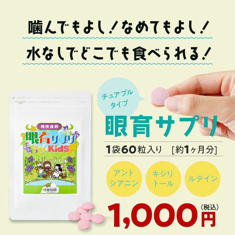 他の画像を見る 1回購入 子供向けアイケアサプリ都度注文 ブルーベリー サプリメント 眼育(めいく)サプリ 子供 近視 視力 サプリ ビタミン 眼精疲労 5.00 販売価格 ¥ 999 税込 カートに入れる お気に入りに登録する