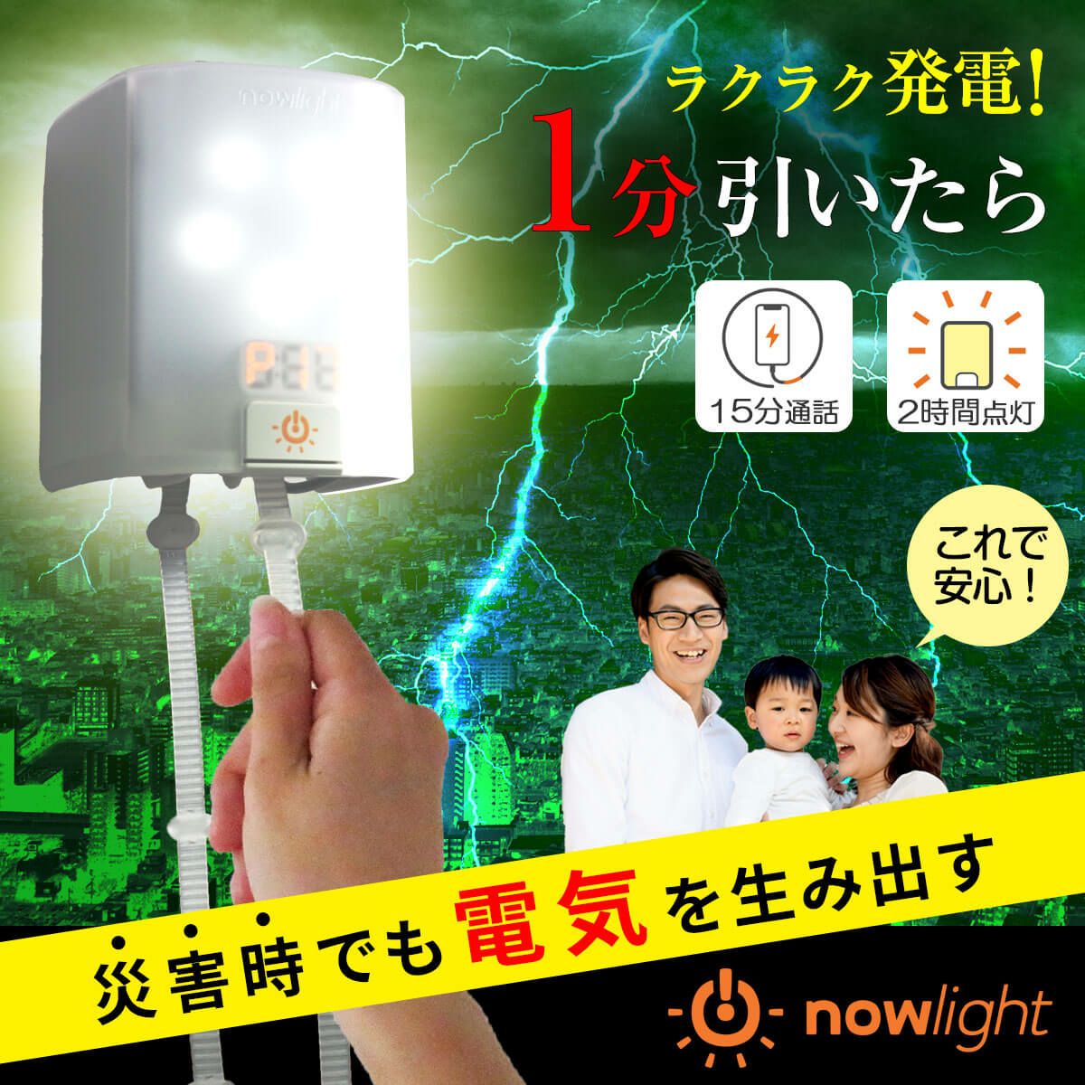他の画像を見る 限定価格 アウトレット 手動発電機 NowLight 【コンプリートセット】 ナウライト 災害 緊急 台風 水害 地震 電力確保 停電 コード スルスル引く 高効率発電 サステナブル 気候変動 1分でスマホ15分通話 ライト2時間点灯 フェーズフリー 5.00 通常価格 ¥ 24,799 のところ 販売価格 ¥ 12,980 税込 カートに入れる お気に入りに登録する