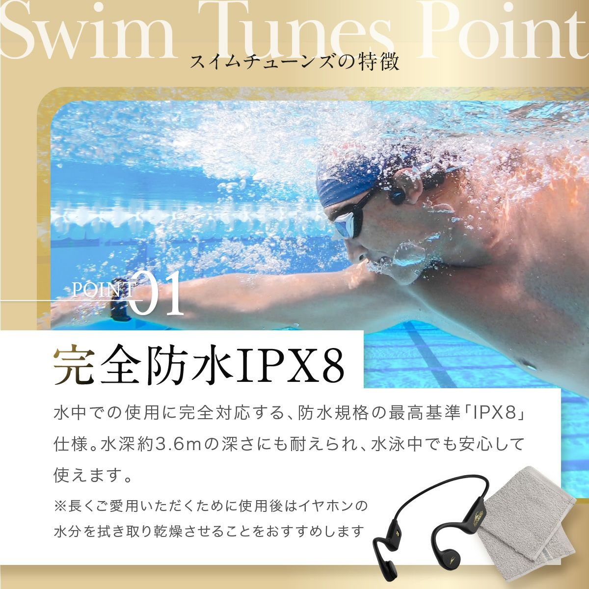 他の画像を見る 限定価格 アウトレット 完全防水 IPX8 骨伝導 水中イヤホン スイムチューンズ Bluetooth5.3 ワイヤレスイヤホン 8GB 水泳 ランニング 防水ヘッドフォン スポーツ トライアスリート 通常価格 ¥ 32,000 のところ 販売価格 ¥ 19,990 税込 在庫切れ 詳細を見る お気に入りに登録する