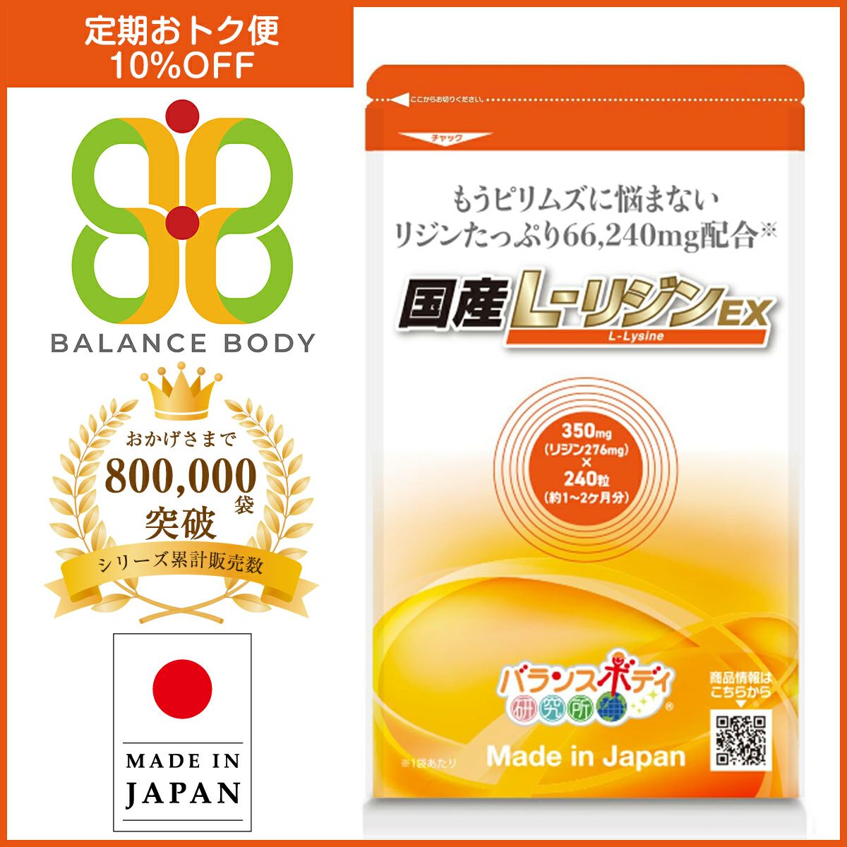 他の画像を見る 定期販売 送料無料10%OFF 国産サプリシリーズ定期注文 【定期】リジン 国産 L-リジンEX(350mg×240粒) サプリメント 1粒 リジン 276mg ヘルペス アミノ酸 サプリ 糖質制限 野菜 ナッツ アルギニン 過剰 リシン 5.00 定期購入価格 ¥ 1,782 税込 詳細を見る お気に入りに登録する